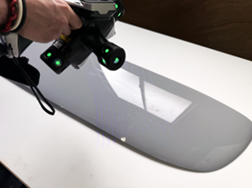 現物をそのままスキャンし、ミリ単位で立体形状をデータ化します。複雑な曲面も正確に取得できます。